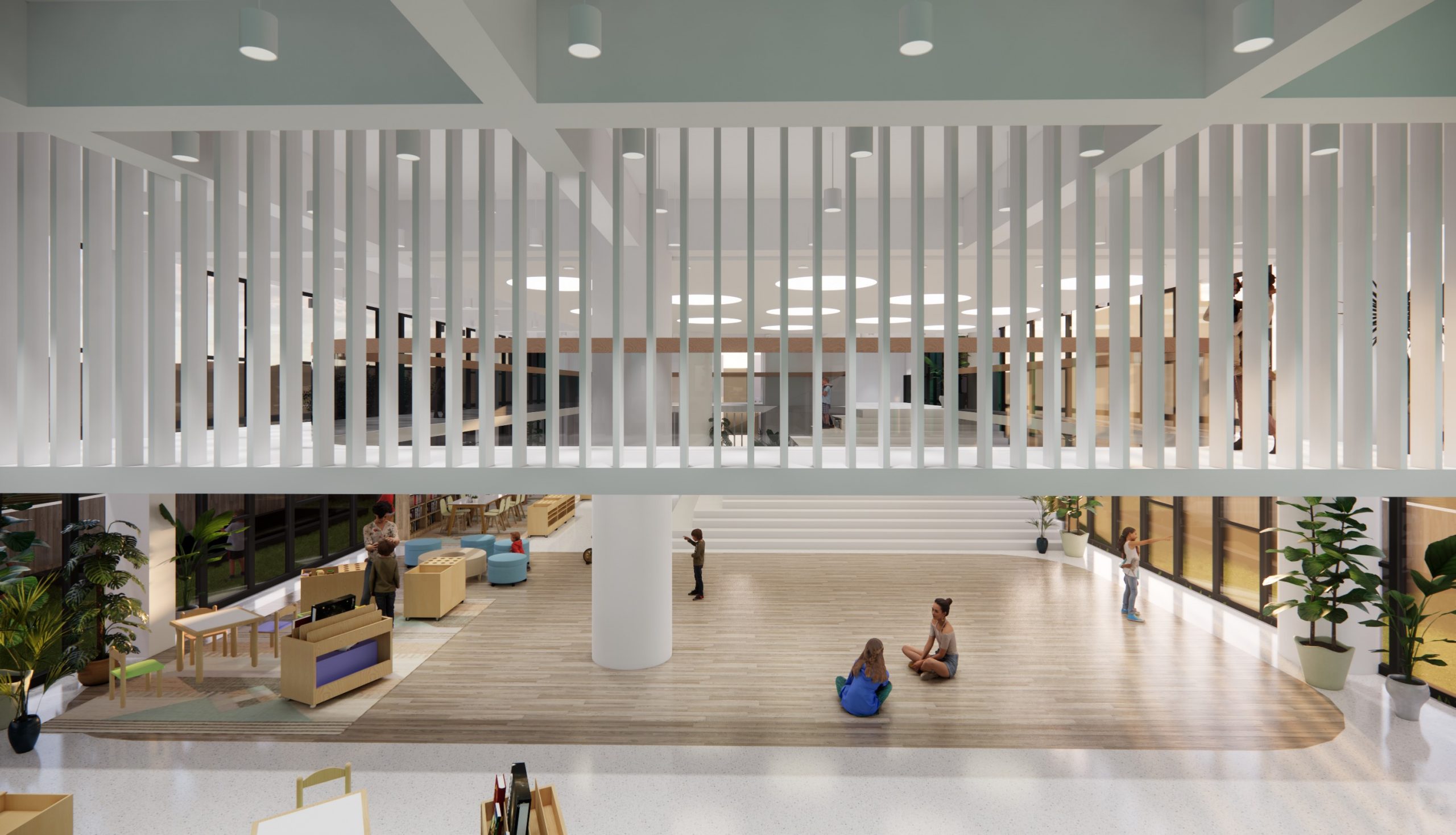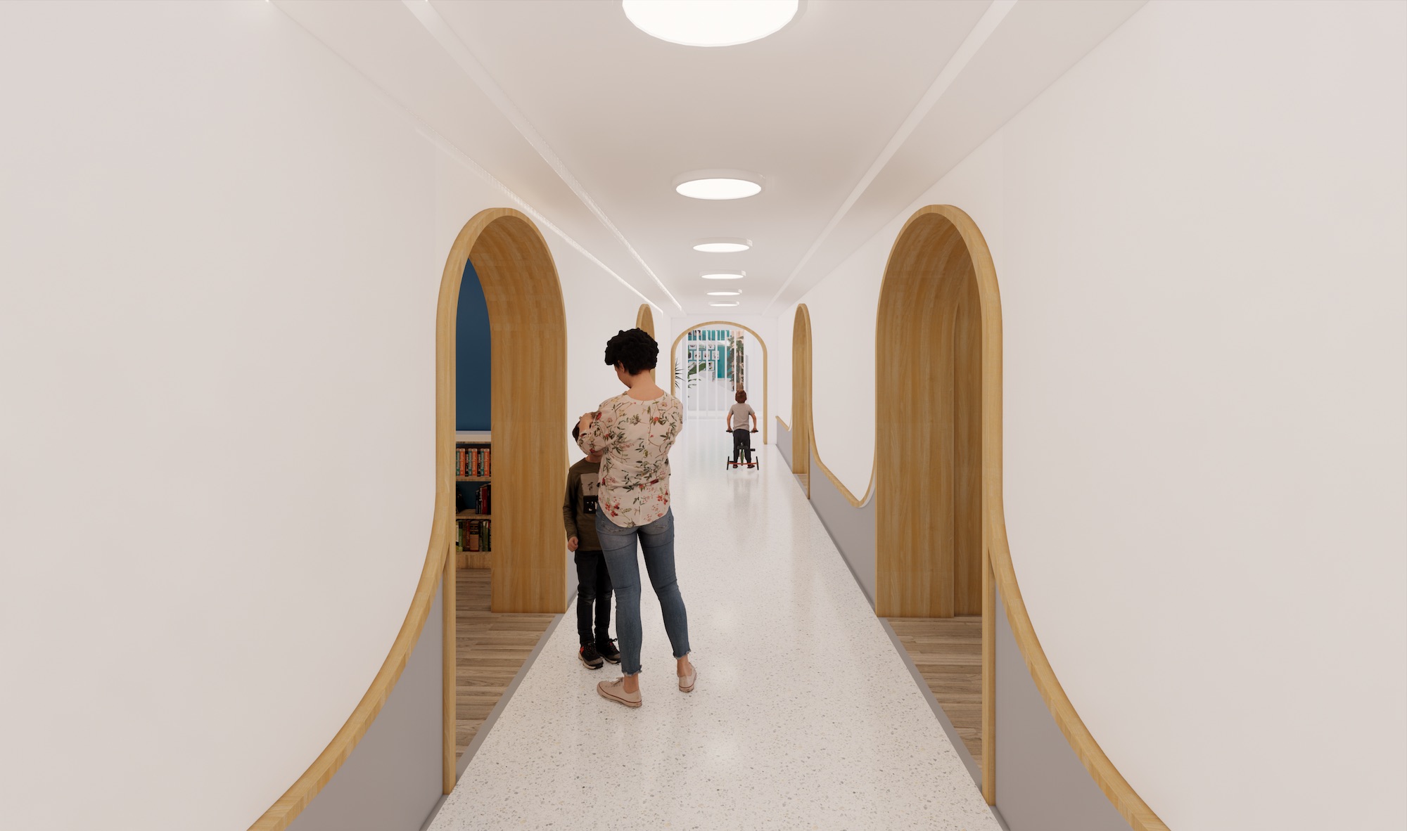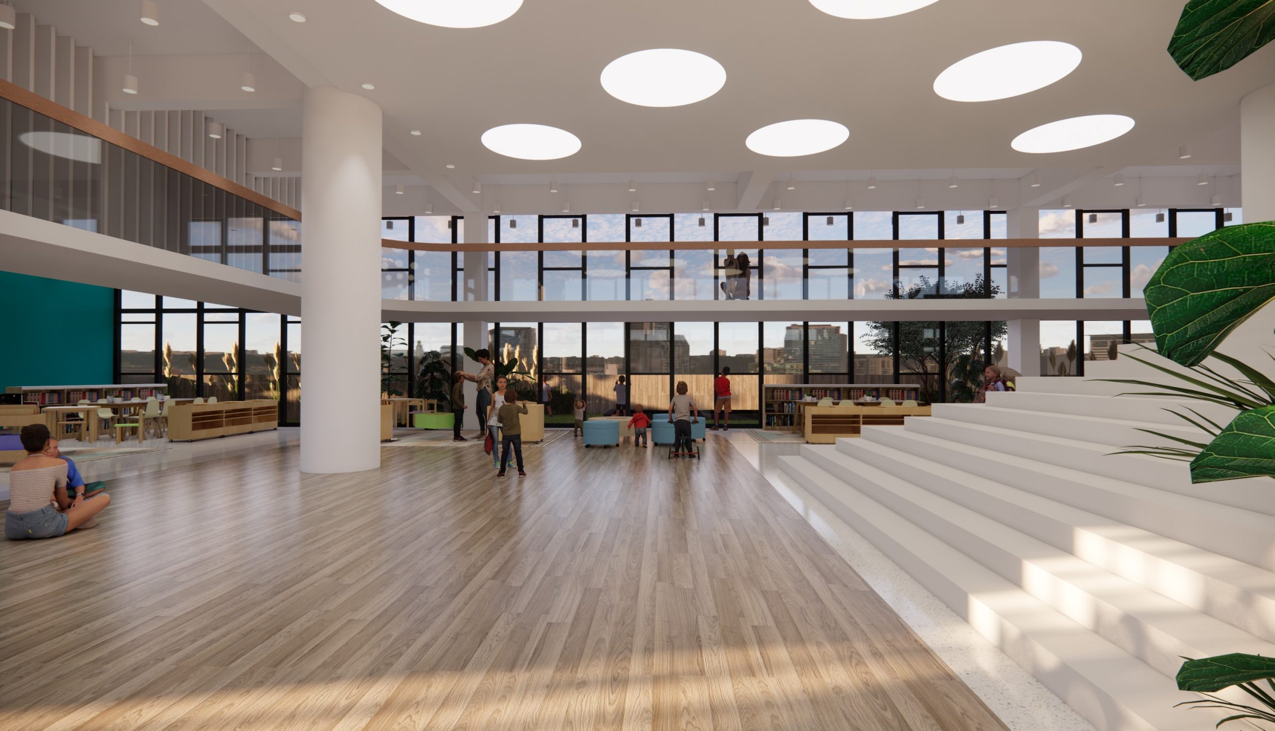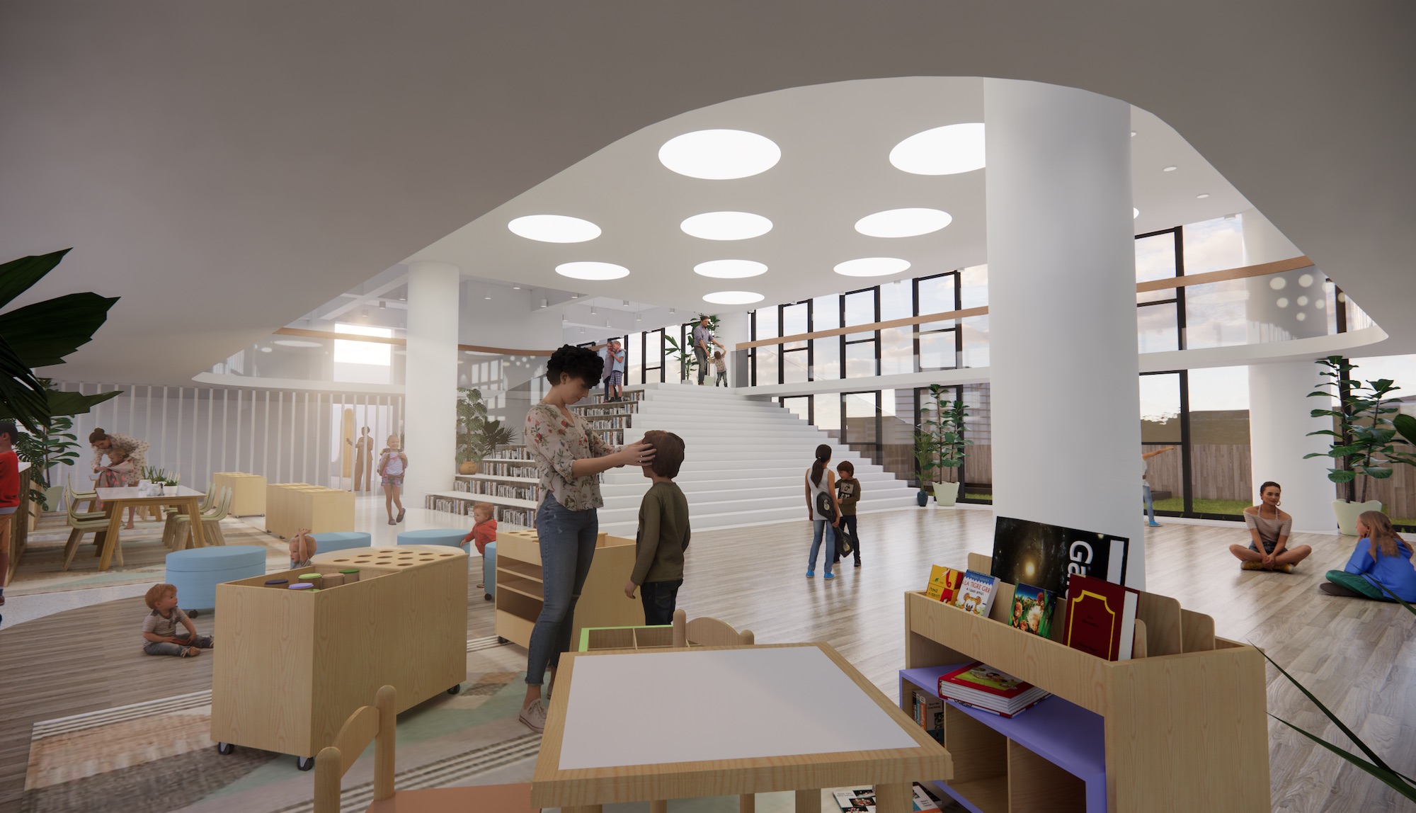 Bright Stars training centre is a re-use of a former office building. The focus of the design was to offer a large multifunctional communal space in addition to classroom spaces. A large unifying stair element links the lower and upper floors and offers an informal aurditorium type space adjacent to the play area.