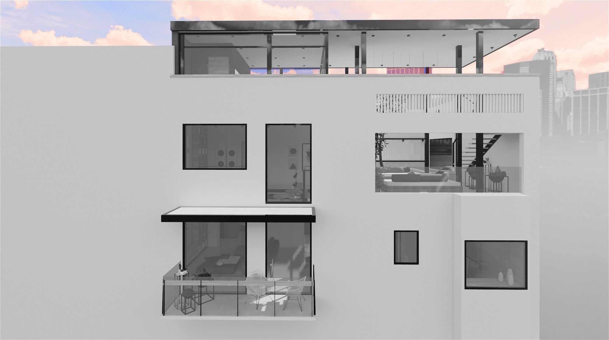 EK Loft is both an architectural and interior design project on the top 3 floors of an apartment building in central Chengdu. The project uses terraced gardens and staircases top unite the 3 levels both internally and externally. The client wanted a place for guests and parties and so the multi layered design allows for a variety of uses and interactions.