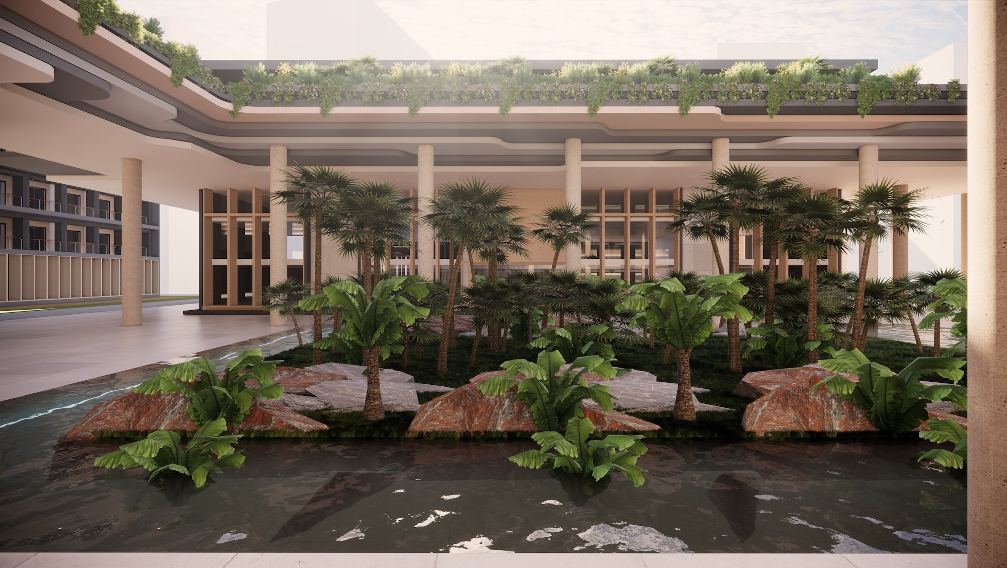 Located in the mountainous and fertile region between Sichuan and Yunnan in south western China the Panzhihua hotel occupies over 25,000m2, featuring rooms, facilities, and functions that focus on health and wellbeing, culture and environment.  The design reflects the coal and ore mining heritage of the region through the expression of stratification, the juxtaposition of light and shade and the layering of earth that echoes the agricultural heritage of the region.